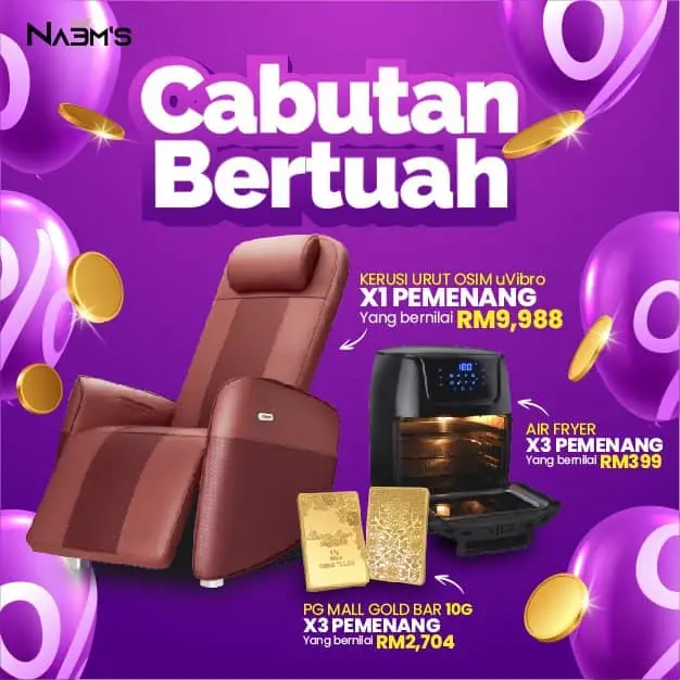 Beli Nour Dan Berpeluang Menangi KERUSI URUT, AIR FRYER, SERTA GOLD BAR!