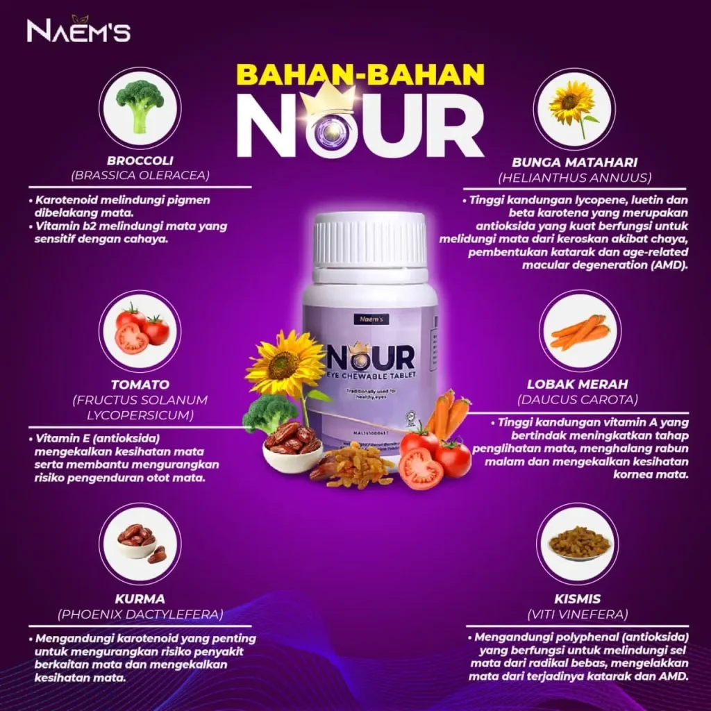 Nour berkelulusan & 100% Halal. Ianya adalah 100% hasil daripada sumber semulajadi.